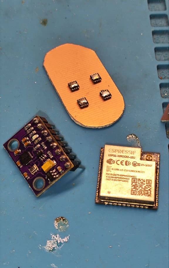 Features: customized ESP32 holder, GY-ICM20948V2 IMU board, boost-converter for powering the ESP32.