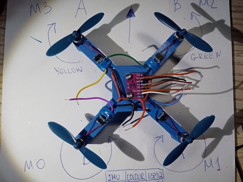 Description: the first drone based on ESP32-S3-CAM board with a camera, implementing Wi-Fi video streaming. Runs HTTP server and HTTP video stream.