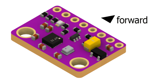 The drone has X axis pointing forward, Y axis pointing left, and Z axis pointing up, and the supported IMU boards have X axis pointing to the pins side and Z axis pointing up from the component side: